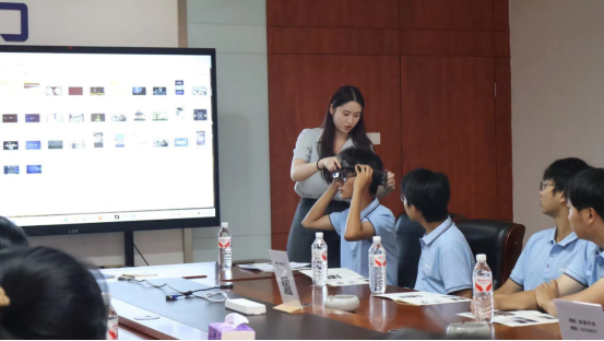 ▲图为首镜科技员工为学生佩戴代表产品试用