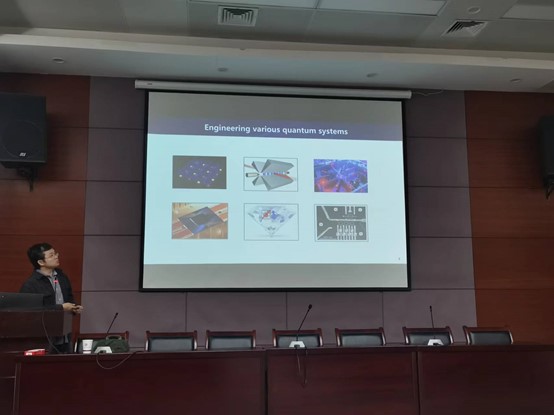 报告开始前,学院常务副院长高伟清教授,首先对王亚教授做了介绍,并希望王亚教授后期能够和我院相关团队多开展合作。报告中,王亚教授首先介绍,宽禁带半导体材料中的自旋点缺陷在量子信息技术中有着重要应用,比如基于金刚石氮空位色心的纳米磁成像技术已经广泛应用于磁材料结构的原位表征。并表示对高性能自旋点缺陷的可控精确制备是突破当前应用的技术瓶颈,扩展其应用范围的重要手段。随后王亚教授介绍了他们团队近期在制备高性能金刚石氮空位色心自旋点缺陷,实现功能化量子器件,以及其在单电荷与单缺陷成像、极端环境下的磁畴成像等微纳电磁探测技术上的研究进展。最后王亚教授就金刚石氮空位色心的未来发展方向和应用前景做了总结与展望,并和参加报告的师生做了热烈的交流与讨论。